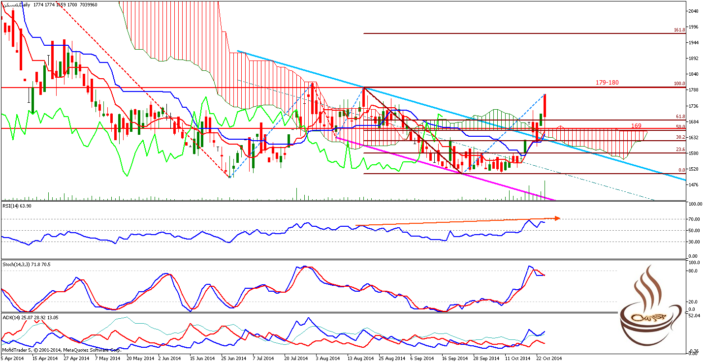 همانطور که درچارت این سهم مشاهده میکنید قیمت علاوه بر شکستن سقف کانال نزولی با قدرت از ابر هم خارج شده است. سایه قیمت هم از زیر قیمت به بالا آمده است. از طرفی اندیکاتور قدرت نسبی سقف قبلی قیمت را شکسته اما هنوز خود سهم موفق به این کار نشده که در صورت قطعی شدن این موضوع می توانیم منتظر یه واگرایی در این سهم و صعود قیمت باشیم . با توجه به اینکه هنوز ابر کمو پیچش نکرده است اما بسیار به این اتفاق نزدیک است و هر منفی سیگنال خرید است. در این راه حمایت مهم سهم 169 تومان و مقاومت خیلی مهم که باید با قدرت شکسته شود محدوده 179-180 تومان است. اندیکاتورهای روندی روند صعودی سهم را تایید می کنند.